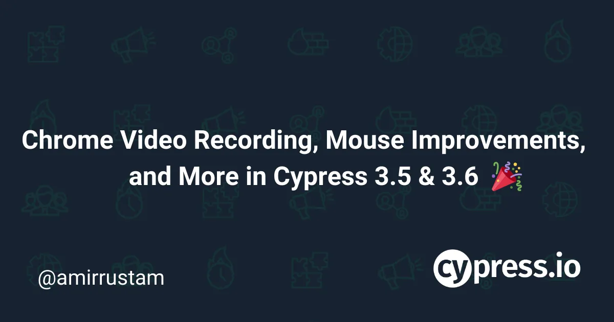 Last week we released Cypress 3.6 shortly after the release of version 3.5, which was a big release that introduced various enhancements such as Chrome video recording, mouse event improvements, and included many bug fixes. Check out all the changes within 3.5 and 3.6 changelogs, but for now let's dive into some notable additions within these releases.