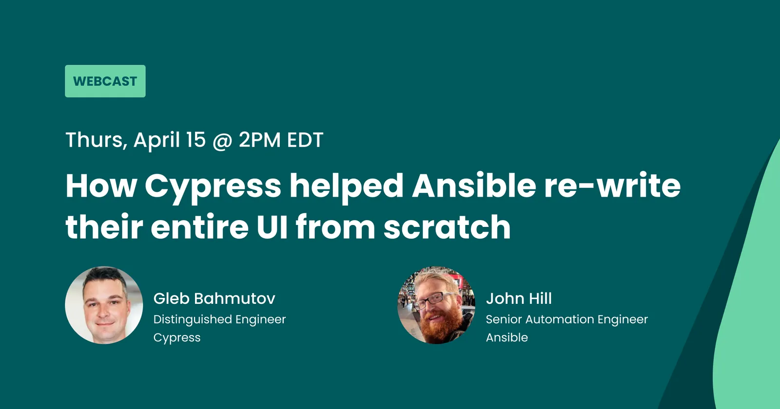 Last week, Distinguished Engineer at Cypress, Gleb Bahmutov, and Senior Automation Engineer at Ansible, John Hill, presented a live webcast on how how Ansible revamped their testing efforts by deleting all of their old tests and starting from scratch with Cypress.