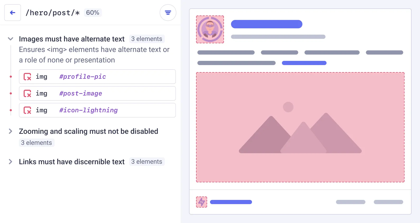 Learn moreLink directly to the violation with exact reproduction steps. Interactive visuals help designers, product teams, and developers easily understand the issue, ensuring everyone is aligned on your accessibility program.